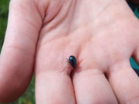 De Els, die we wat beter hebben bekeken, had al kleine, verse blaadjes. De oude propjes hingen er nog aan. Overal zag je een klein, blauwzwart kevertje met een mooie glans (fluorescerend) namelijk het Elzenhaantje. Die malse blaadjes stonden op hun menu. De Els overleeft dat wel hoor.