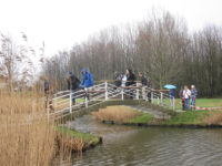 Het zonnetje kwam door en overal zongen de Heggenmussen! Langs de Nessepolder, over de Rottebanbrug liepen we weer terug, richting Trefpunt. Langs de Rotte staken de eerste roze bloeiaren van het Groot hoefblad hun koppen boven de grond en een enkel geel bloemknopje van het Speenkruid stond klaar om open te gaan.
